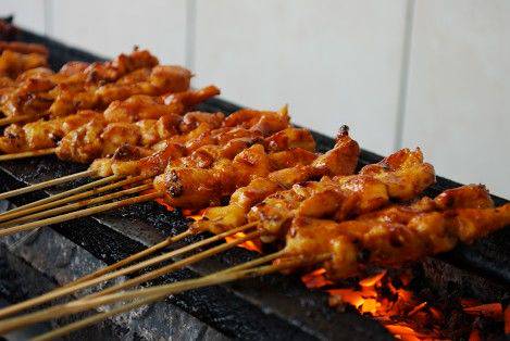 Sebagai kuliner kaki lima, sate mempunyai rasa khas yang selalu bikin rindu. Ada sate ayam, daging kambing, daging sapi, dengan bumbu kecap atau kacang yang sedap. Ditambah irisan bawang merah menambah cita rasa sate jadi makin mantap. Kamu paling suka sate apa nih?